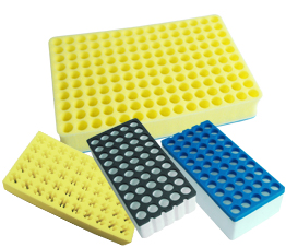 試験管の保護や運搬に最適なスポンジ製のラックです。